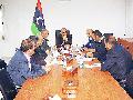 عقد صباح يوم الاثنين 3 فبراير 2020 اجتماعا بالمقر الرئيسي لشركة الشرارة الذهبية للخدمات النفطية بجنزور لمناقشة مسودة العقود المزمع ابرامها مع الشركات الناقلة للوقود.
